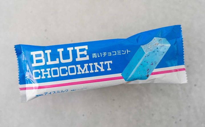 チョコミントアイスは緑色の商品も多いと思いますが、今回の「青いチョコミント」は、商品名のとおり青色。