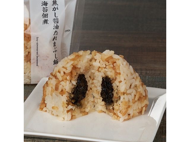 ごま油の風味を加えた海苔佃煮を、焦がし醤油タレをまぶしたごはんで包んだおむすびです。 ※宮崎県、鹿児島県では取り扱いがございません。