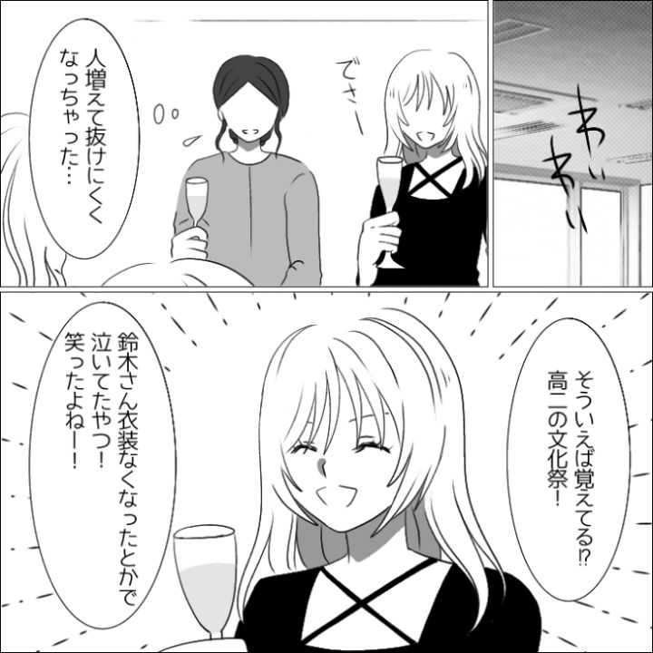 高校を卒業して15年経った頃、主人公のもとに届いた同窓会の案内状。当時の嫌な記憶がありながらも、主人公は行ってみることにしたのですが・・・。