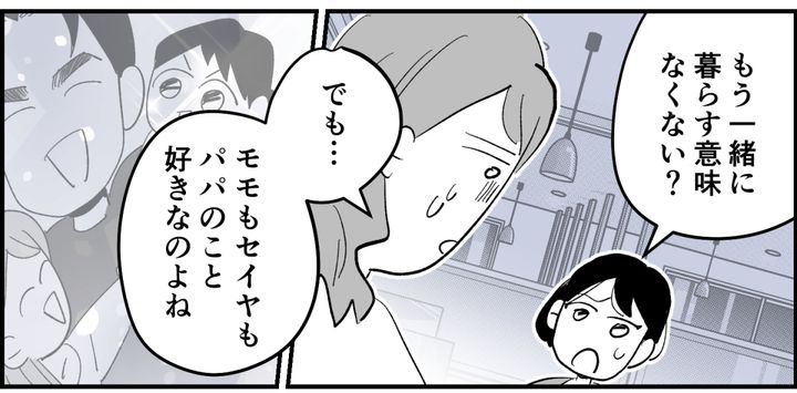 話を聞いたナツコは「離婚も考えたほうがいい」と言いましたが、モモとセイヤはパパが大好き。