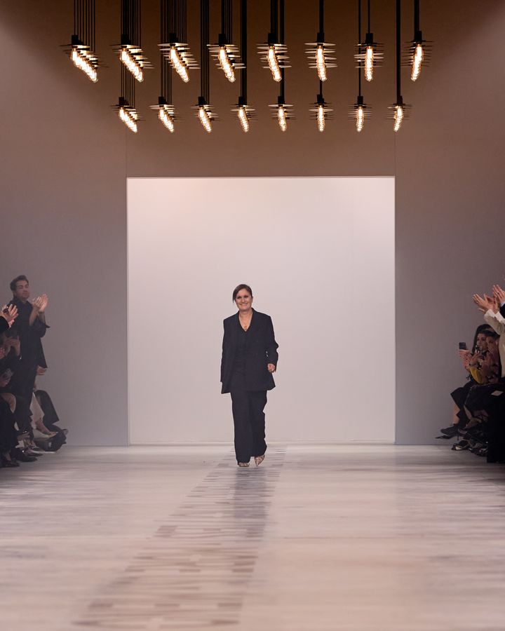 「Less I, More Us(“私”よりも“私たち”)」。キャットウォークにステンシルで掲げられたこの言葉は、マリア・グラツィア・キウリが「フェンディ」で放った新章の宣言だった。それは彼女の精神性であり、同時にフェンディ家の五姉妹が築き上げた創造的結束と、ローマのメゾンが育んできたイタリア的かつ女性的な労働の流儀へのオマージュでもある。