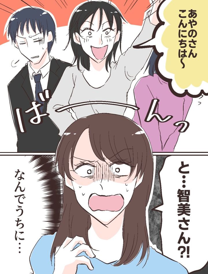 「あやのさん、こんにちは~」修吾と義母の背後から登場したのは、満面の笑みを浮かべた智美さんでした。「と・・・智美さん!?」思わず声が裏返ります。ふみのの予想はまさかの的中。信じがたいことに、智美さんは両家顔合わせの場にまで乗り込んできたのです。