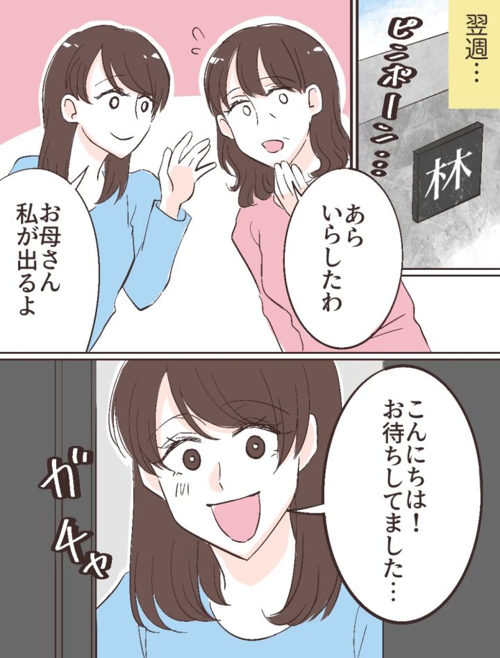 そして、両家顔合わせ当日を迎えました。修吾たちが到着したようで、インターホンが鳴ります。「あら、いらしたわ」緊張しているのか、どこか落ち着かない様子の母に「お母さん、私が出るよ」と声をかけました。私は笑顔で玄関を開けて「こんにちは!お待ちしてました」そう言って3人を迎えます。