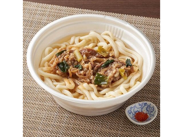 柔らかく粘りのあるうどん麺に、甘辛く煮こんだ牛肉とねぎを盛り付けました。別添で一味唐辛子付きです。 ※宮崎県、鹿児島県では取り扱いがございません。 九州で販売