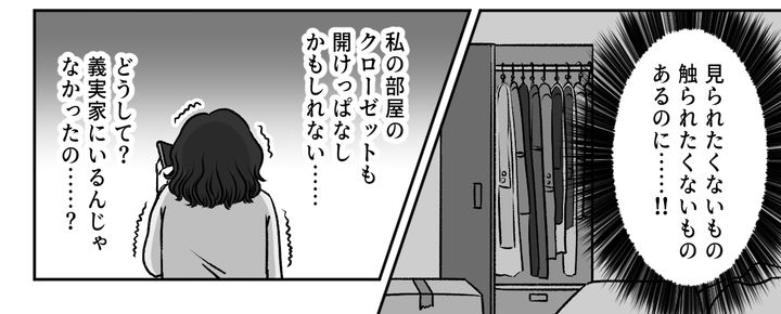 忙しさにかまけて部屋の片づけを怠った私が悪いのは承知していますが、陣痛が来る直前まで家で仕事をしていたんです。見られたくないもの、触られたくないものもあります。陣痛が来たとき、慌てていたのでもしかしたらクローゼットも開けっぱなしだったかもしれません。