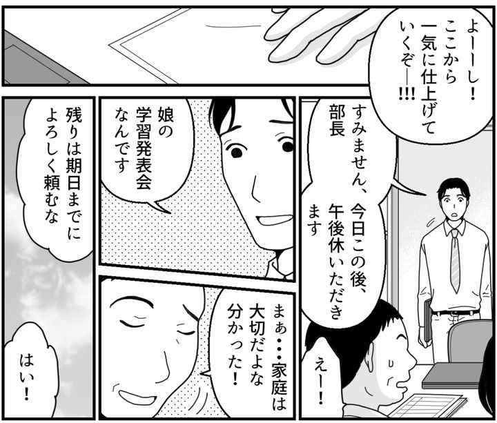 私(サキ)は、夫のタダユキと子どもたちとの4人家族です。共働きのため、子どもの学校行事や習い事などのスケジュールは夫婦で調整しながら生活しています。とはいっても、都合をつけるのはたいてい私なのですが……。そんなとき、世には女性の首相が誕生。どうやら夫は、流行語にもなった「働いて働いて働いて……」という言葉にプレッシャーを感じているようです。でも大切なのは、それぞれのワークライフバランスを認め合うことではないでしょうか。