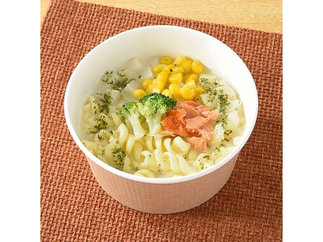 魚介や野菜の旨みにミルクのコクをきかせたクリームスープです。具材にはフジリ(パスタ)・鮭・野菜などを使用し、食べごたえもあります。 ※山梨県の一部、長野県では取り扱いございません。