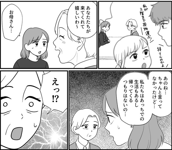 私は改めて母に「実家の近くに引っ越してくることはできない」と伝えました。すると母はとても驚いた顔をしたのです。なんと、そんなつもりはもともとなかったと言うのです。あれ……? リコさんから聞いていた話とは様子がちがうなと少し違和感を覚えたのです。