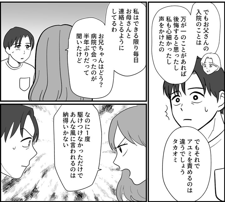 <介護拒否なら金返せ!>家族4人で帰省。母の話を聞いて違和感…兄夫婦と話さねば!【まんが】