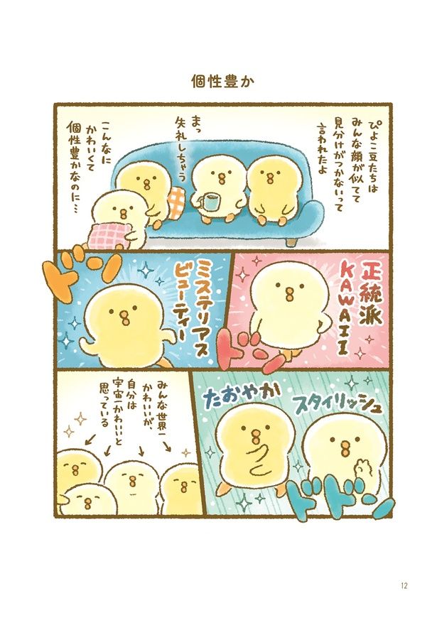 「ひよこ豆じゃないよ。ぴよこ豆だよ」LINEスタンプでも大人気のキャラクター“ぴよこ豆”が待望の書籍化! ひよこに似てるけど、大人になっても姿が変わらない、ころころもちもちした生き物“ぴよこ豆”。集団行動が好きで、好奇心と食欲が旺盛。姿がそっくりな仲間はたくさんいるけど、ひとりとして同じ“ぴよこ豆”はいない。個性豊かでかわいい“ぴよこ豆”たちが送る、ちょっぴりシュールでもちもちした日常『ぴよこ豆』をお届けします。彼らの奥深き謎めいた世界をお楽しみください。