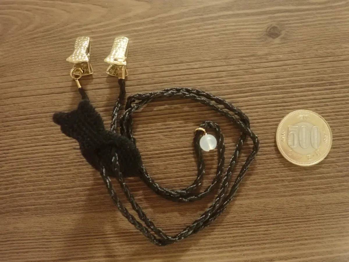 帽子やマスクに装着したら、猫型のストッパーで長さを調整して使いましょう。