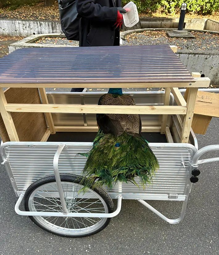 そのほか、学祭、新歓時期、入試時期等のイベント時にはクジャクを大学のキャンパスへ連れて行き、お散歩をしています。