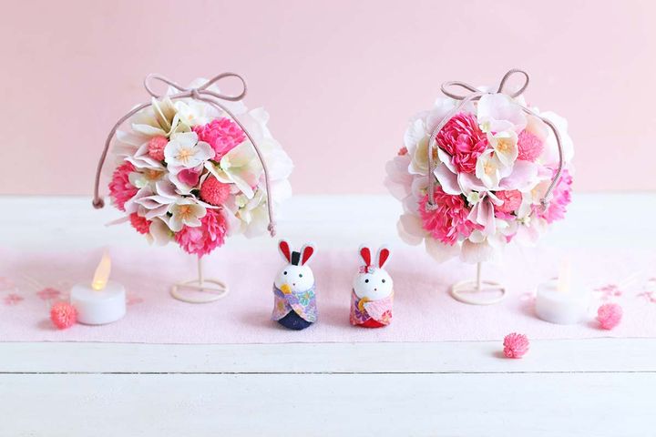 ひな祭りをやさしく包む、花のぼんぼり作り