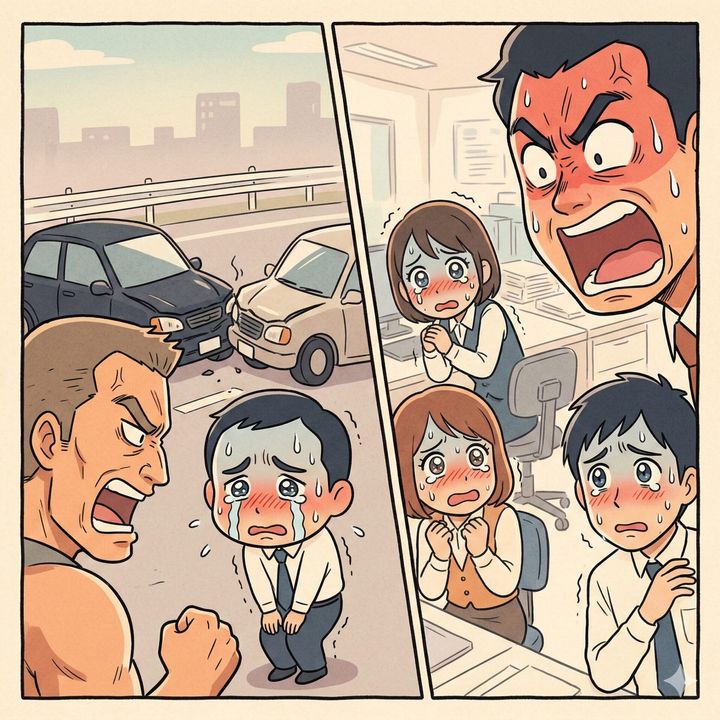 「やる気がないなら帰れ!給料泥棒が!」と怒鳴り散らすのが日常な課長→週末の追突事故で暴かれた、情けない本性