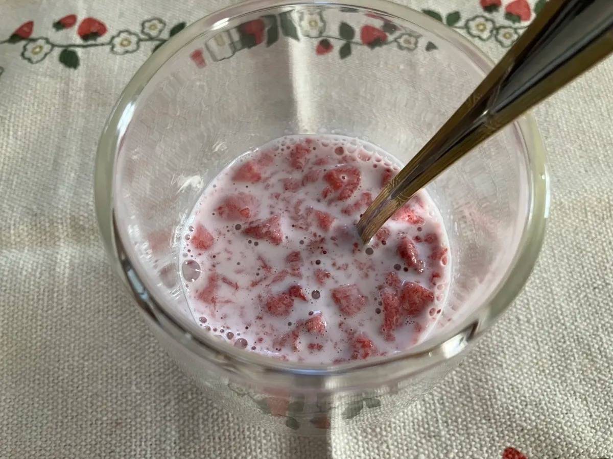 牛乳120mlを注いで約1分待ち、よくかき混ぜたら完成♡
