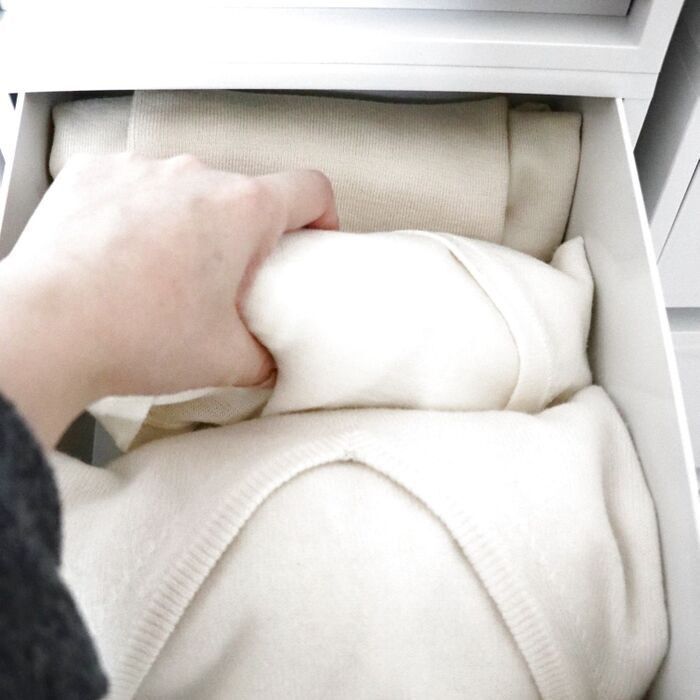 冬~春先にかけて活躍するニット。でも、タンスの引き出しから出し入れするうちに、ぐちゃぐちゃになってしまうのが悩み。そこで、収納上手の暮らしニスタさんが実践しているある方法をご紹介!しかも簡単にできちゃいますよ♪