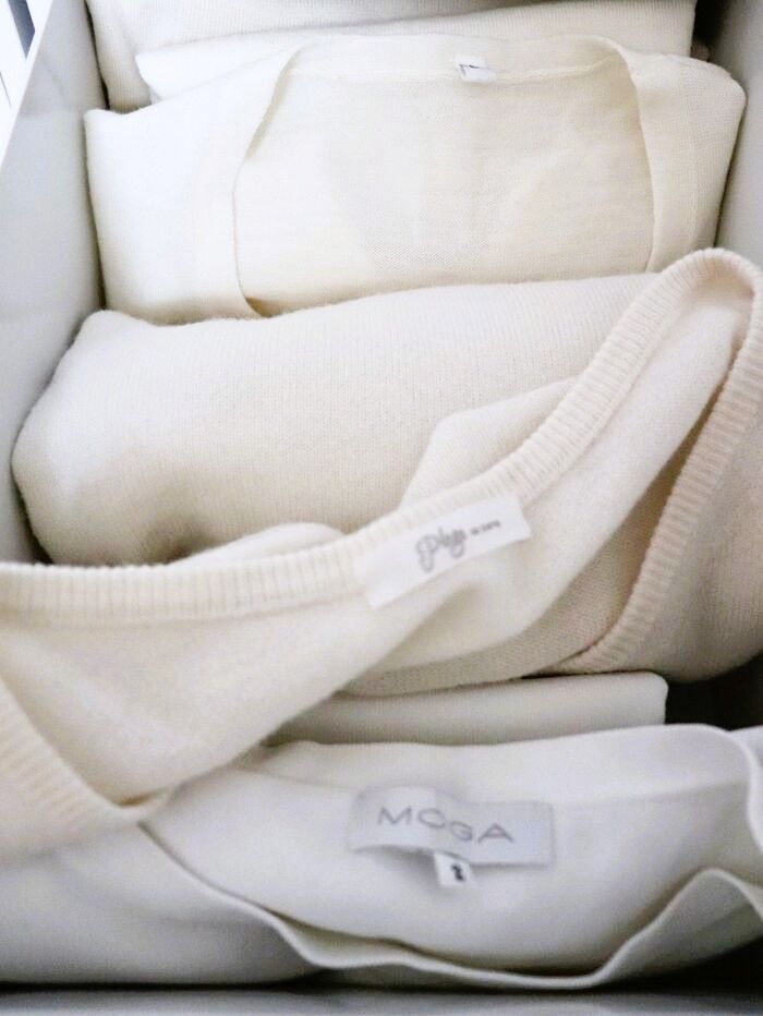 3. "逆さま"に入れるだけ!『ニット収納』の新定番。取り出しスムーズできれいもキープ♡