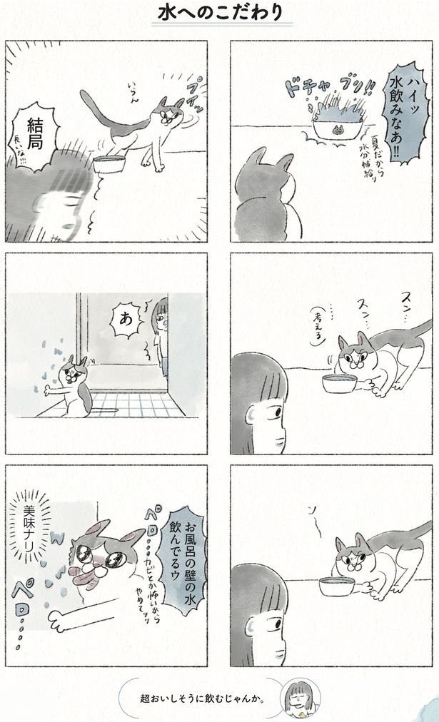 用意した水をなかなか飲んでくれない…実家の猫が見せる水への強いこだわりとは?/うちの猫は今日も塩対応