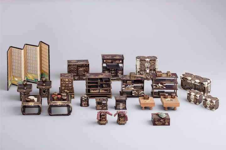 (紫檀象牙細工蒔絵雛道具/さいたま市岩槻人形博物館蔵)