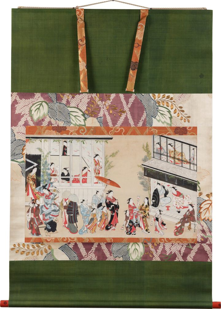 そこで本展では、表装文化の研究者・濱村繭衣子氏を監修に迎え、太田記念美術館の600点を超える肉筆浮世絵コレクションから、優れた表装をともなう約40点を厳選しご紹介いたします。脇役として見過ごされがちな表装に目を向け、肉筆浮世絵の魅力を味わい尽くす展覧会です。