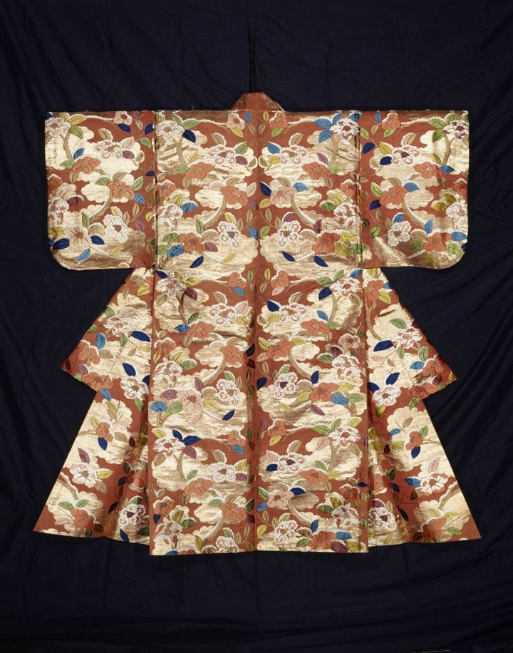 紅地金雲雪持椿模様唐織 江戸時代/荏原 畠山美術館蔵【前期展示】)