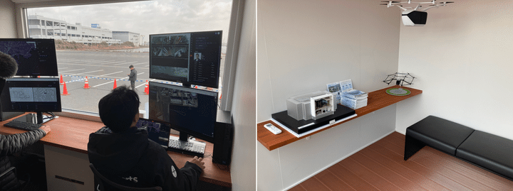 左:空域管理などはこの部屋で行う、右:待合室も完備