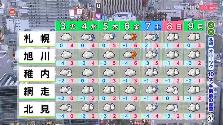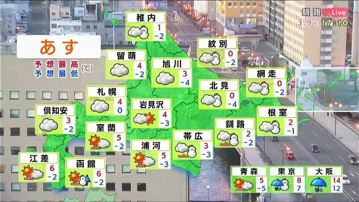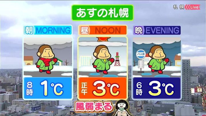 あす3日(火)の札幌です!朝昼晩の天気をもんすけでお伝えします!