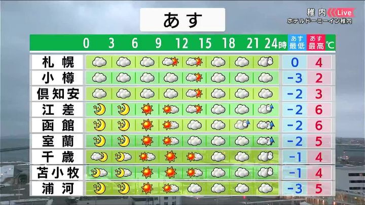・あすの札幌の朝昼晩の天気