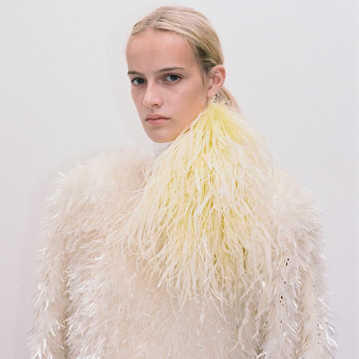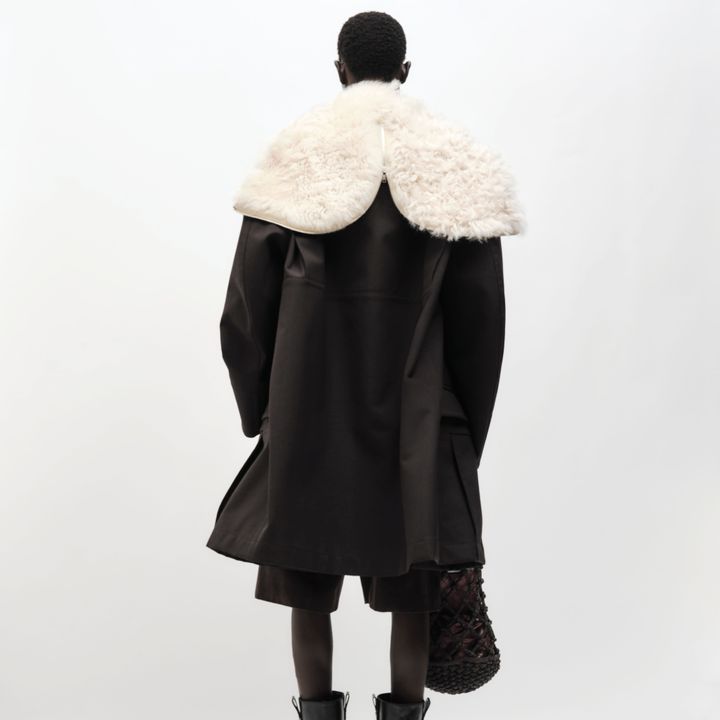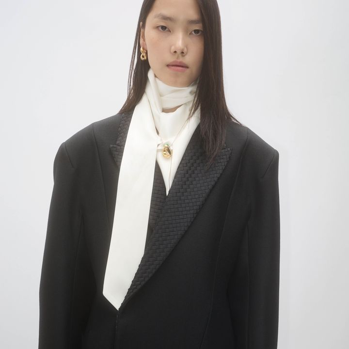メゾンのクラフツマンシップを前面に押し出した方向性について、「ボッテガ・ヴェネタのクリエイションは着る人のためのものであり、それゆえにありとあらゆるディテールへの配慮が求められると思っています」とトロッターは話す。「メゾンの専門技術を駆使し、しっかりとしたフォルムと柔らかな印象を確実に結びつけるために、すべての内部構造に技を吹き込もうとしました」