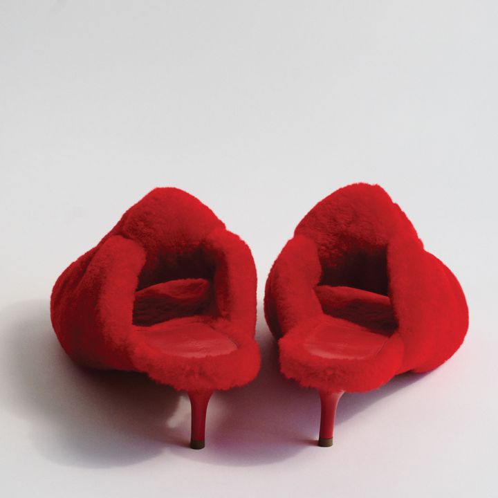 一方、トロッターが手がけるフットウェアは、クラシックなものから主張のあるものまで、幅広いデザインが揃う。「柔らかさと遊び心のある、よりリラックスした雰囲気とアティチュードを表現しようとしました」と話す彼女によるラインナップには、洗練されたローファーやスニーカー、すっきりとしたミュールもあれば、どこか近未来的なスキューバブーツや透明なヒール、ふんわりとした質感のパンプスもあった。