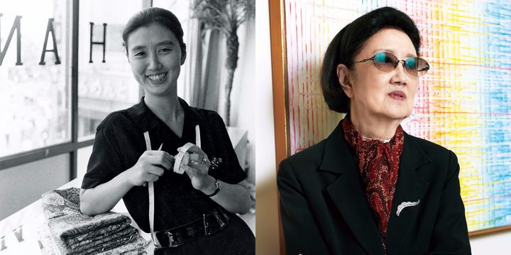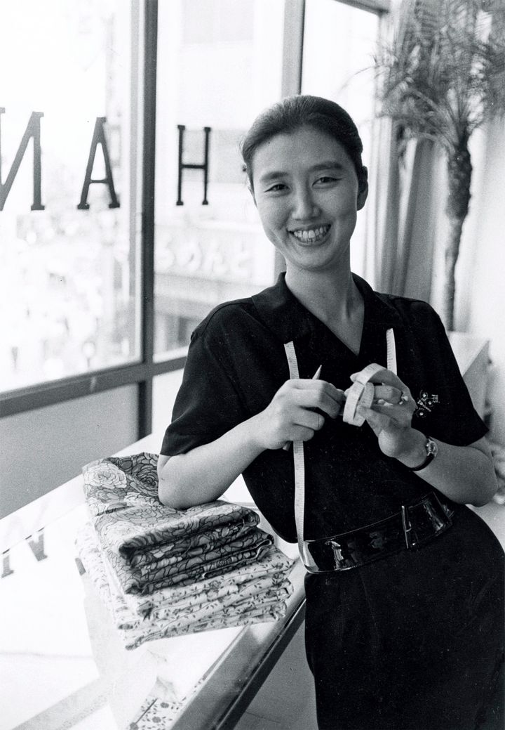 キャリア初期の森英恵。結婚から3年後、洋裁学校で服作りを学んだことを生かし、新宿に洋装店「ひよしや」を開店。女性が仕事をもち社会で活躍することが珍しかった時代に、子どもを抱えながら顧客の注文に応じる日々は多忙を極めた。ここから世界のハナヱ・モリへ大きく羽ばたいていく原点。