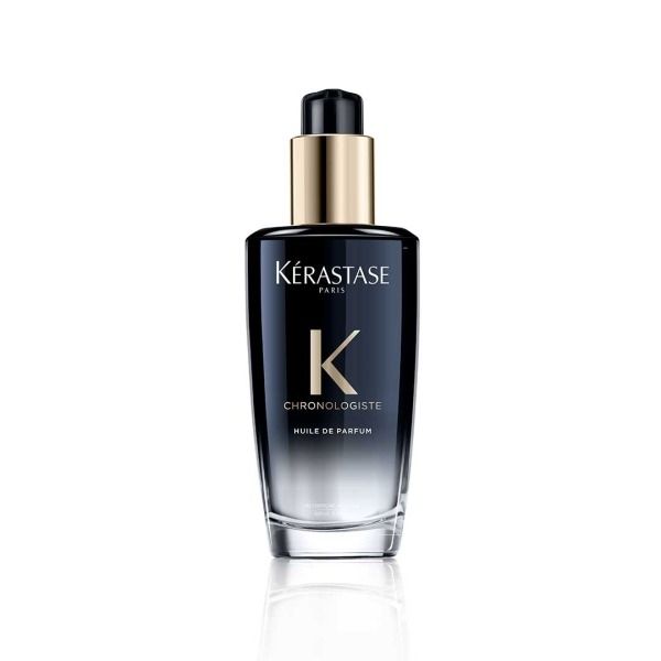 ユイル クロノロジスト R 100mL 7,150円/ケラスターゼ 「ヘアアイロンやコテで熱処理しないと外出できる髪にまとまらないというほど、パサつきやすい乾燥毛なのですが、お風呂上がりにこのオイルをつけドライヤーするようになって激変。サラッとまとまり、翌日もブラッシングするだけでキレイに」(植木祐里加さん・メイクアップアーティスト)