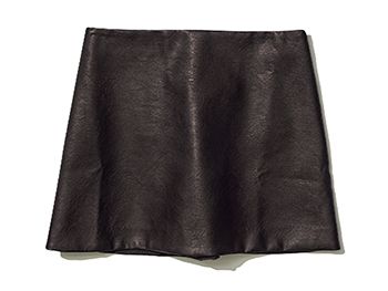 「カジュアルが得意なGapならではの風合いで、主張しすぎないからレザーでも気軽に使えそう。個人的にミニは短いほうがかわいくてバランスもとりやすいと思っているので、この丈感も好き。」(スタイリスト・樋口さん) より親近感がわく、黒に限りなく近いダークブラウン。台形で脚長効果もねらえる。
