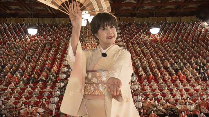 まずは地元で有名なお寺のひな祭りイベントへ。会場の広間に足を踏み入れた清水は、驚きの光景に言葉を失う。そこには、天井まで届く32段の巨大な段飾りに、約1200体ものひな人形がギッシリと! 実はこれら、一般家庭で飾れなくなった人形を寺で引き取り、毎年展示しているものという。日本舞踊の名取でもある清水は、圧巻の眺めに興奮し、おひな様をバックに自慢の舞を披露。しかし、そのポンコツすぎるパフォーマンスに千鳥からは「コウメ太夫?」と猛ツッコミが…。