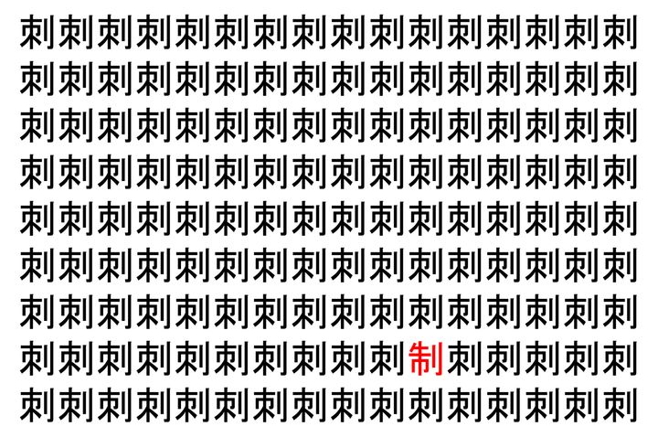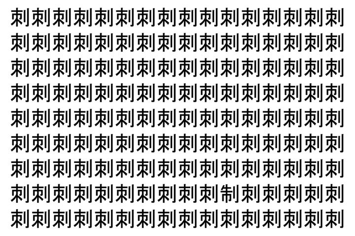 画像の中には、「刺」という漢字が縦に9行、横に16個並んでいます。 全部で144個となりますが・・・、そのうち1つは「異なる漢字」となってますよ!!