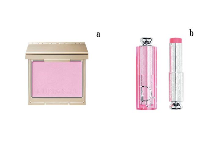 a.ルナソル カラーリングブリーズ 03 ¥4,840/カネボウ化粧品 b.ディオール バックス テージ ロージー グロウ スティック 831 ¥7,040(限定)/パルファン・クリスチャン・ディオール