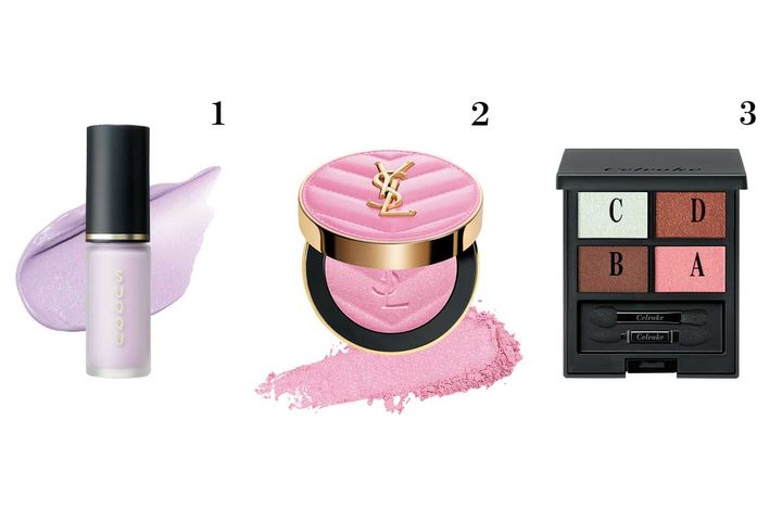 1.SUQQU コンプレクション フェイス カラー 01 ¥4,950 2.イヴ・サンローラン YSL メイクミーブラッシュパウダー 10 ¥8,360/イヴ・サンローラン・ボーテ 3.セルヴォーク ヴァティック アイパレット EX20(限定) ¥6,820