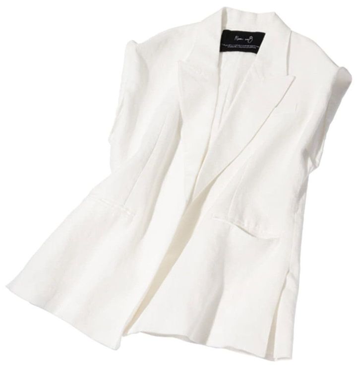 自分だけのこだわりを内に秘めた提唱者は、ハレの日も辛口ブラックを効かせたホワイトワントーンで差をつけて。シャツ1枚では心もとない4月こそジレが重宝します。