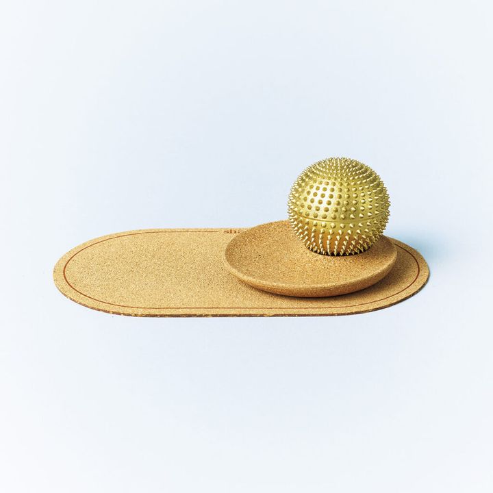 スパイクと呼ばれる針のような突起が凝り固まった部分を刺激し、血行を促進するウェルネスツール。「〈シャクティ〉といえばあのマットのイメージが強いですが、こんな手のひらサイズのボールがあるとは! いつでも場所を気にせず、握ったり、転がしたりできるのがいいですね。真鍮の程よい重みがあるので体重を無理にかける必要なし。しばらくほぐしていると、ぽかぽか温まってきて、癖になる”痛気持ちよさ”が。手のひらや甲、首や肩、全身どこでも使えますが、特に頭と側頭部、足の裏が最高。コルクのマットやストッパー付きなので、デスクなどに置いておけば習慣化しやすそう」