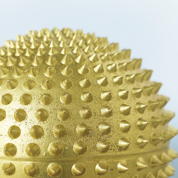 スパイクは太く強いものから、小さくて細かいものまでが並んでいる。「その日の体調に合わせて、強さを自分で調整できるのも魅力。ながら使いできるし、いきなりマットを試すには勇気が……という初心者にはぴったり。ボックスに入っているし、値段も含め、これはギフトにもよさそうですね」。∅約6㎝ 170g ¥16,500(シャクティジャパン https://shaktimat.co.jp/)