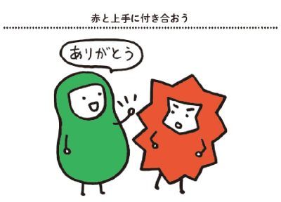本書のキーワード、「赤はそのままに」はそのような意味合いで使っています。少しずつでいいので、自分の赤を理解し、赤とのかかわり方をあなたなりに見つけていってほしいと思います。