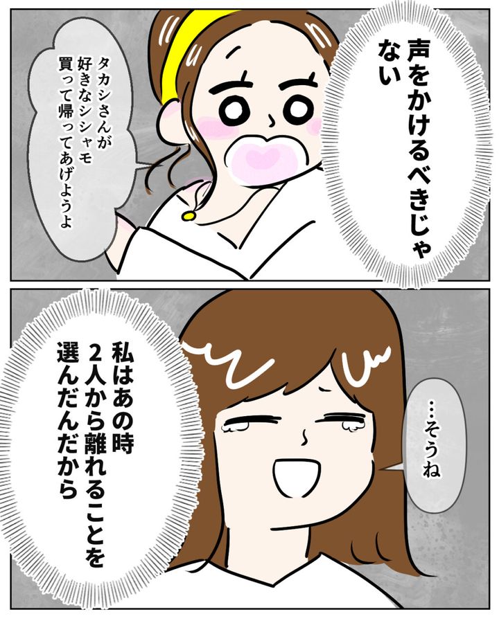 声をかけたい気持ちがありましたが、私は思い留まりました。私はあの時2人から離れることを選んだから。声をかける資格すらないと思いました。