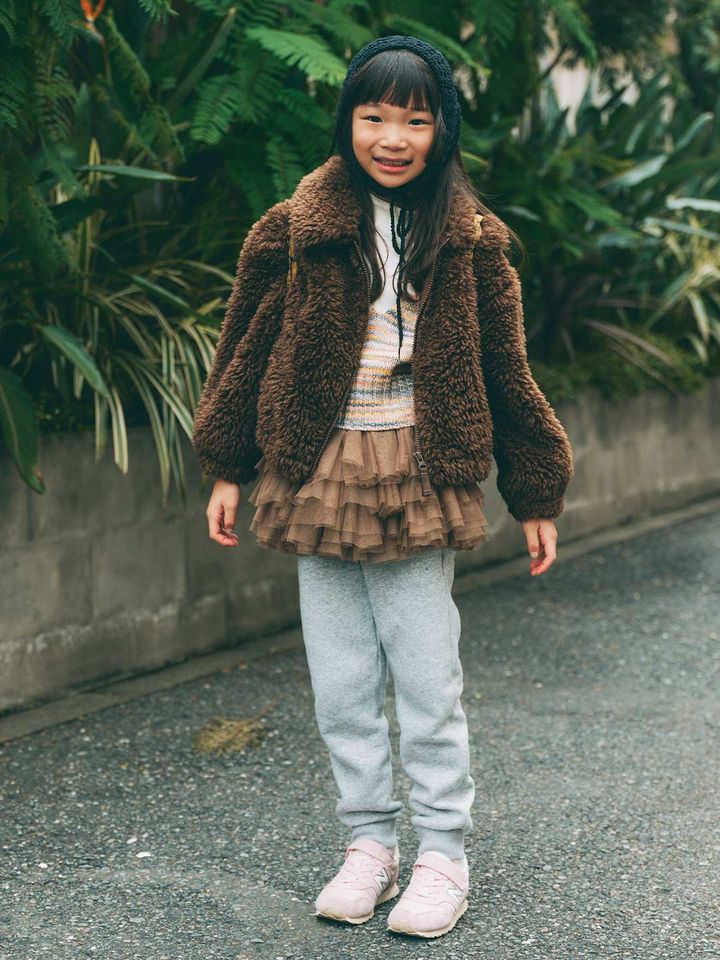 グレーのスウェットを親子で揃えた冬のアクティブコーデが到着! ママはロングコートで緊張感をプラス、一方キッズはボアアウターとチュールスカートのレイヤードでガーリームードにまとめ。動きやすさもおしゃれも叶えた親子リンクは必見!