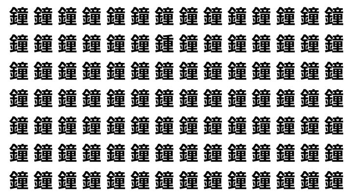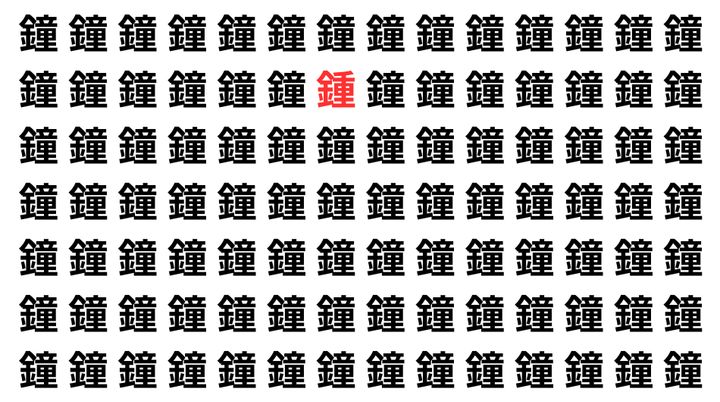 たくさんの「鐘」の中に、よく似た別の漢字が1文字だけ隠れています。
