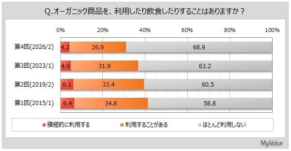 マイボイスコムはこのほど、2月1日~7日に実施した『オーガニック商品』に関するインターネット調査の結果を発表しました。