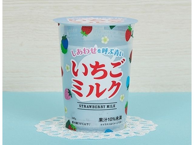 つぶつぶいちご果肉が入った、驚きの青色いちごミルク。