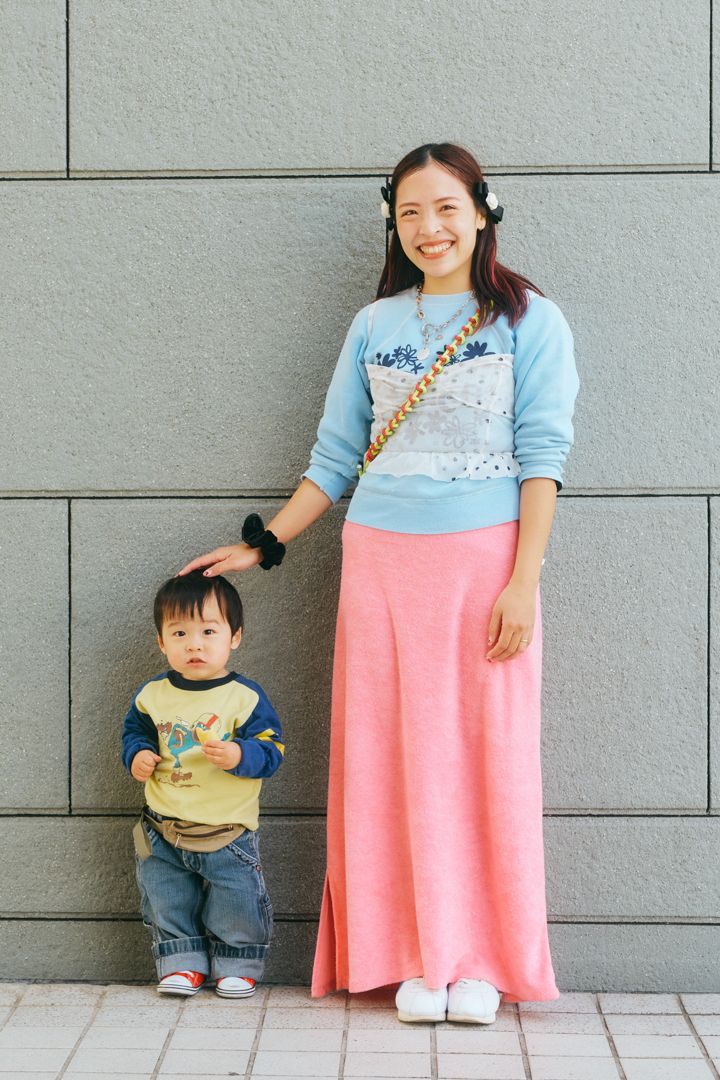 るみさん&みとくん(1歳)アパレル販売員アパレル販売員のるみさんは、ポップなカラーのスタイリングがお得意。『ボボショーズ』やアウトドアブランドのほか、古着も好きで、1歳半になるみとくんのお洋服は、セカストをよく利用しているそう。アパレルで培った目利き力は確か!