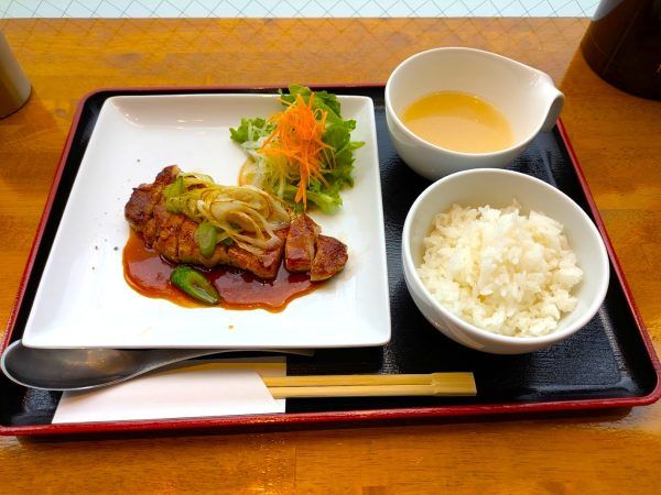 トンテキセット 150g 1300円 (1100円) タイムサービスで、1300円が1100円です。メインのトンテキ150gに、ライスとスープ付きです。