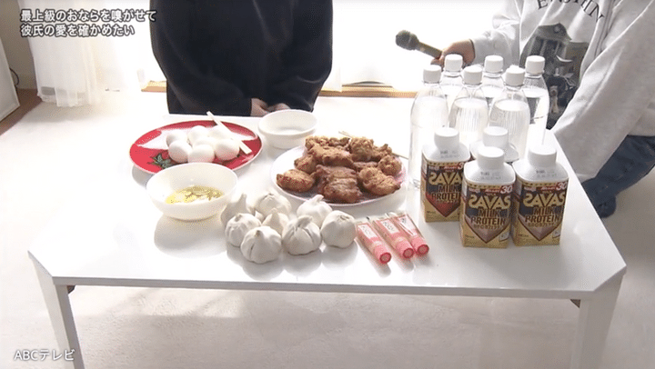 探偵局の医療顧問・谷先生曰く、クサいおならを出すためにはタンパク質の摂取が有効とのこと。ニンニクのオイル漬けとニンニクチューブ、鳥の唐揚げ、ゆで卵、プロテイン、炭酸水などを飲み食いした結果、確実におならのクサさがレベルアップした。依頼者も、特殊な装置で自分のおならのクサさを確認し、「痛いです!」「濃いです!」と手応えを感じているようだ。