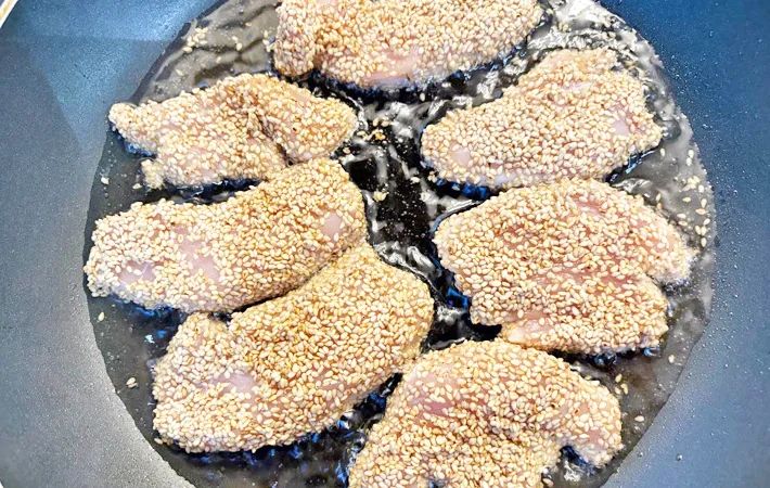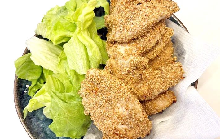 下味は鶏のから揚げとほぼ同じですが、衣にゴマを使うことで新鮮味も楽しめますよ。